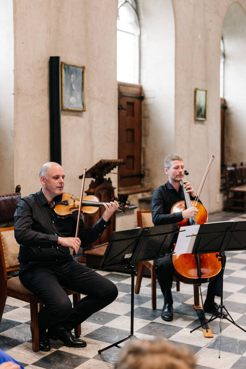 vioolcello duo met de concertmeester van Het Zeeuws Orkest Marcus Vliegen in de Burgerzaal van het stadhuis te Middelburg